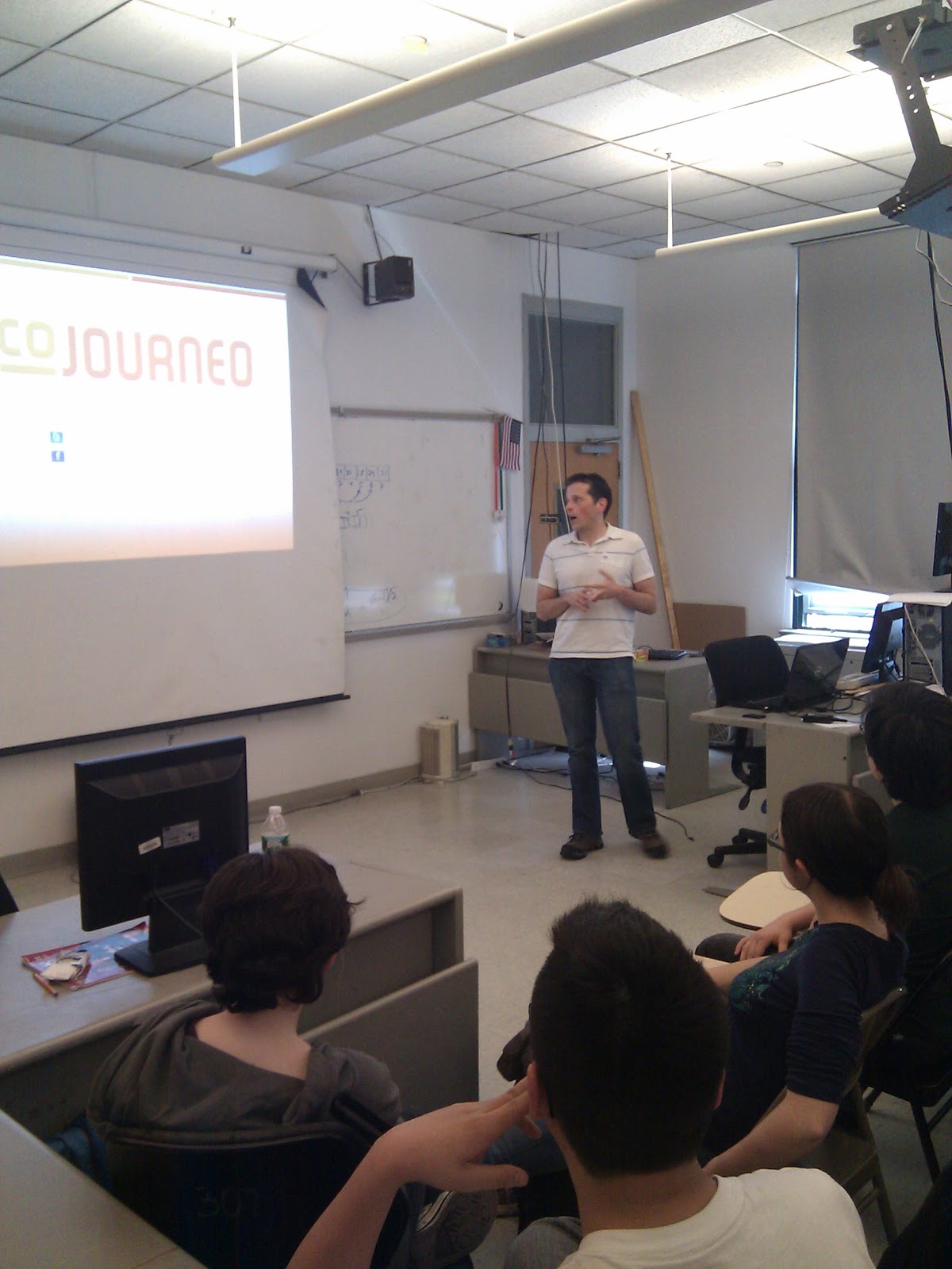 Rather than visiting Kevin, I thought it would be fun to have him come down after school, present Cojourneo to any students that wanted to stay late and then field questions.